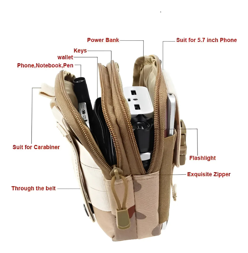 Con múltiples compartimentos, permite organizar de manera eficiente tarjetas, documentos y efectivo, asegurando que todo esté al alcance de la mano. Su sistema Molle facilita la adaptación a diferentes equipos, lo que la hace ideal para aventureros y amantes del outdoor. Además, su diseño compacto y ligero la convierte en un accesorio fácil de llevar, sin sacrificar espacio ni comodidad.