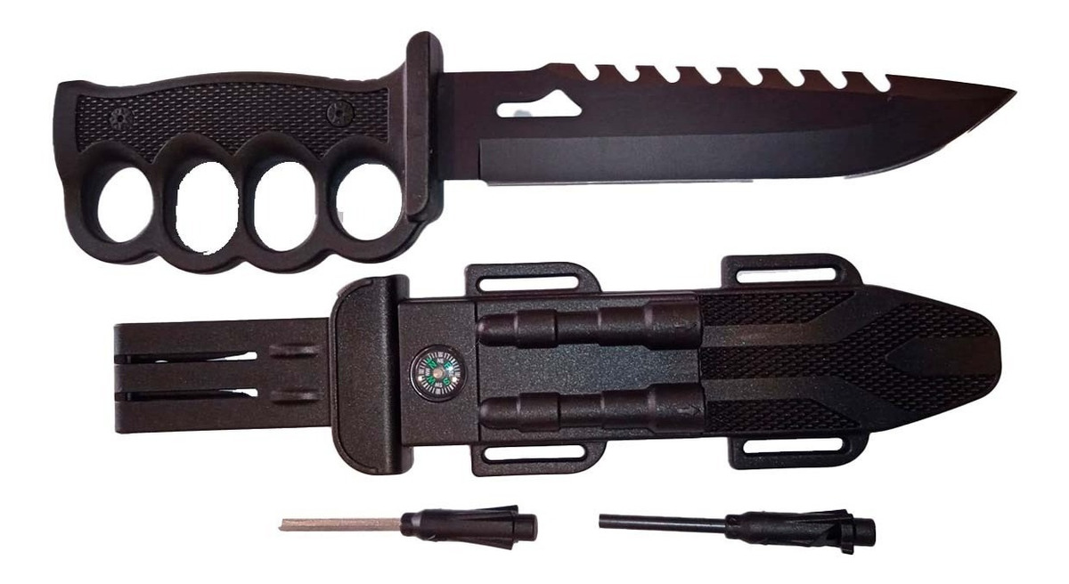Cuchillo tactico supervivencia, con brujula, pedernal y rompe cristales.