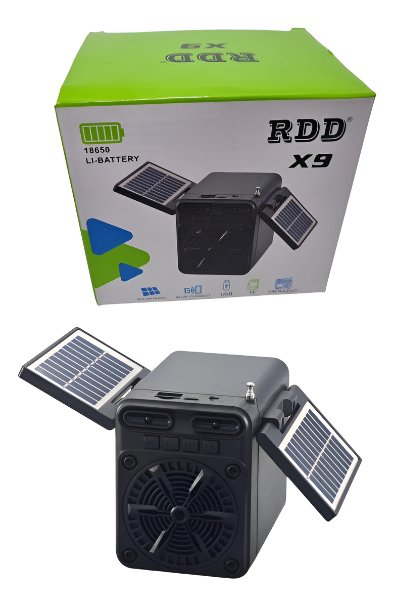 Explora las características de este parlante solar doble. Ideal para tus necesidades diarias.
