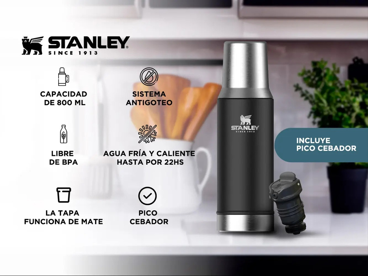 El mate no tiene tiempo ni lugar. Fue pensando en hacer tu experiencia aún más especial que creamos el compañero ideal para matear: el termo Mate System. Con tecnología exclusiva, creamos el tapón de altísima precisión para la cebada perfecta, con flujo continuo de agua y en el lugar correcto. El tapón tiene la pendiente ideal para verter el agua directamente en el punto que desees. La tapa de acero inoxidable se convierte en mate y el termo Stanley mantiene tu agua a la temperatura ideal. Solo o acompañado, con el Mate System Stanley tienes la capacidad de transformar a tu mate en un momento legendario.